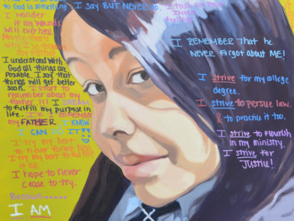 Lauren Vargas (ACG ’15) along with youth participants from North Philadelphia are exhibiting the creation of collaborative portraits in the show I Am Paintings, which will be held Friday, March 11 from 6:00pm- 8:00pm at the Orange Korner Arts gallery (4401 North 7th St.) Through a series of artistic workshops on identity, racism, and sexism, the young women created written self-portraits to portray themselves as leaders in their community in face of the obstacles they have overcome. After each portrait was painted, each girl was given complete artistic freedom to express herself on the canvas. There will be a number of interactive activities, and a discussion by the youth who participated in the project. Youth participants are Saiyeh Crosscombe, Ashley Hawkins, Michelle Lundi, Adianez Mendez, Taisha Ortiz and Kenise Terry.